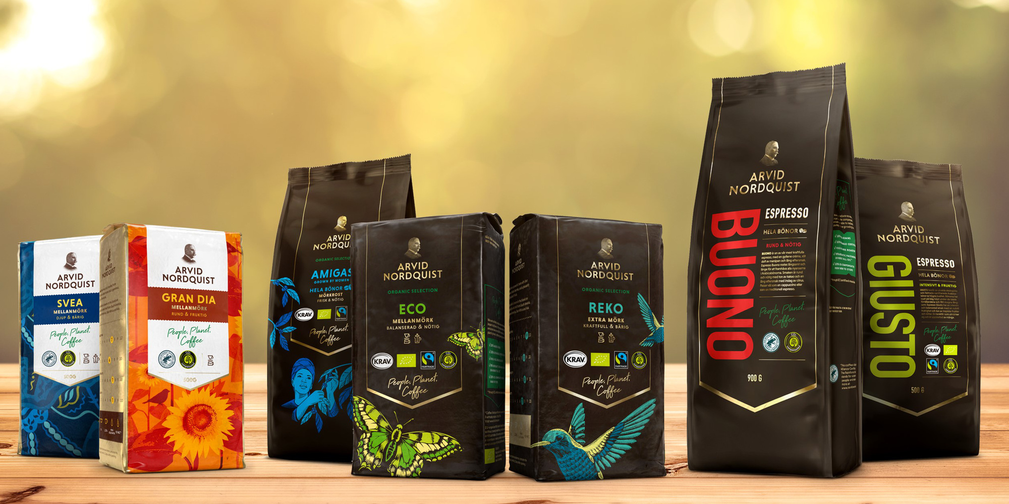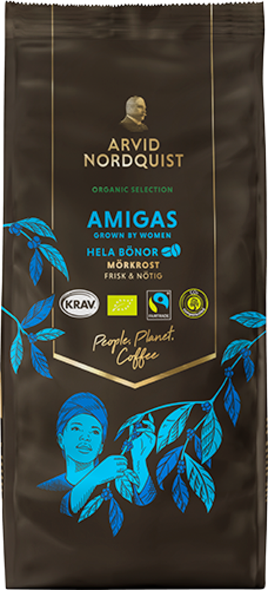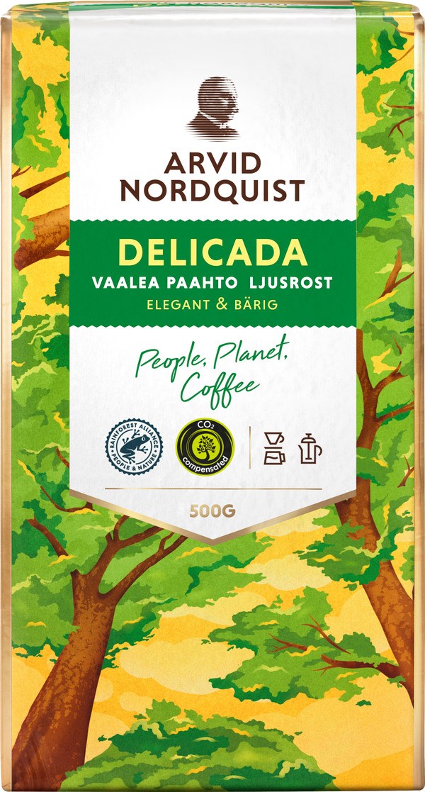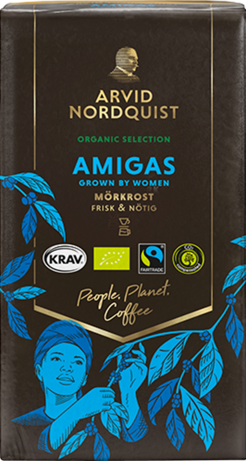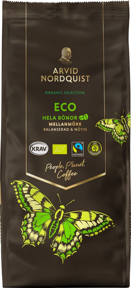Valitsemme kahvinpapumme huolella. Arvid Nordquist on ainoa suuri pohjoismainen kahvipaahtimo, joka ostaa ainoastaan 100 % vastuullisesti sertifioituja kahvipapuja. Kahvimme ovat myös 100 % ilmastokompensoituja ja käytämme tuotannossamme biokaasua ja uusiutuvaa sähköä sekä lämmitystä.