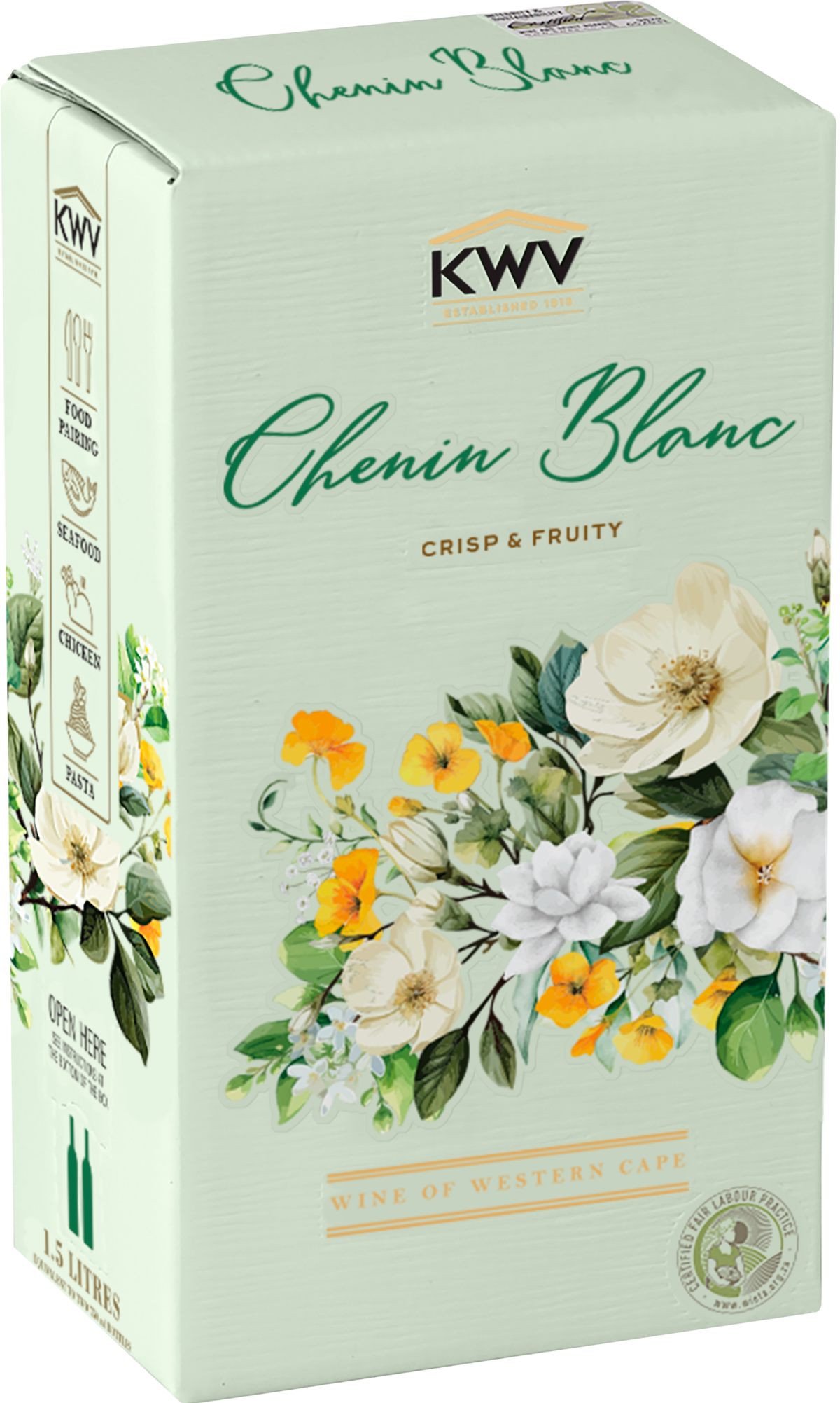 KWV Chenin Blanc on ihastuttavan virkistävä ja hapokas valkoviini kätevässä 1,5 litran hanapakkauksessa.